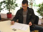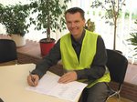 Mischa Klemm bei der "Unterzeichnung von "Keine neuen Tagebaue"