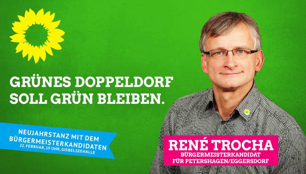Der bündnisgrüne Bürgermeisterkandidat für Petershagen/Eggersdorf, RENÈ TROCHA, lädt am 20. Februar 2018 ab 18 Uhr alle interessierten Bürgerinnen und Bürger zu einem Fachgespräch zur Siedlungsentwicklung in Petershagen/Eggersdorf ein. Gemeinsam mit Andreas Rieger, Sprecher der Bundesarbeitsgemeinschaft Planen Bauen Wohnen, möchte TROCHA über die Möglichkeiten der Bebauung ohne Verlust von Naturräumen sprechen. Dabei werden u.a. auch die Themen Siedlungsdruck, Grundstücksgrößen, Flächenversiegelung, Aufgabe und Bedeutung von B-Plänen sowie die Handlungsmöglichkeiten der Gemeinde bei der Siedlungsentwicklung besprochen. Interessierte sind herzlich eingeladen an dem Fachgespräch teilzunehmen. Eines der Herzensanliegen von TROCH ist es die grüne und naturnahe Struktur des Doppeldorfes zu erhalten und auszubauen. Dazu gehört auch, den Zuzug nach Petershagen/Eggersdorf gezielter zu gestalten und somit die Flächenversiegelung im Doppeldorf zu begrenzen.